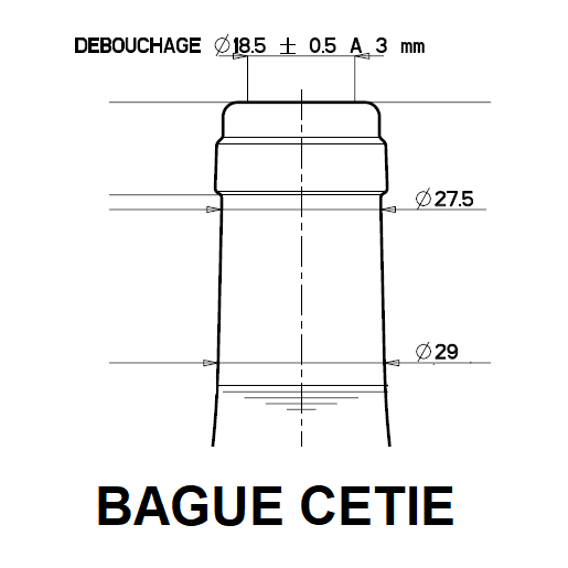 -Quatre tailles: pour bouteille et magnum en bague "cétie" ou "carrée", pour jéroboam et mathusalem.