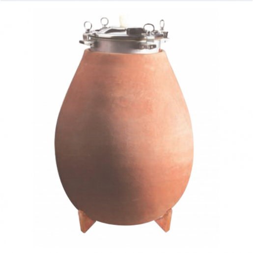 Elle est cuite à 1 020°C. De ce fait, les pores de la terre ne sont pas entièrement fermés et la micro-oxygénation naturelle est plus forte qu’une barrique.