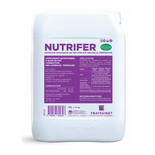Principalement utilisé pour la vigne, Nutrifer® sert également pour les carences des arbres fruitiers, des fraisiers, des cultures florales et arbres ou arbustes d'ornement.